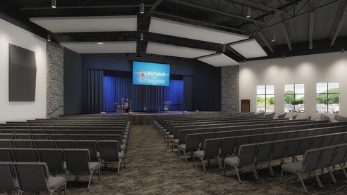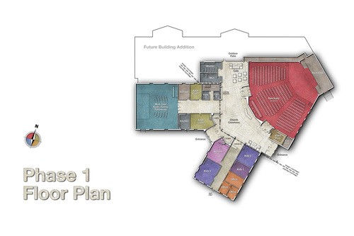 The expanded ministry center will include a new Worship Center with seating for 460 people, Lobby and Cafe, and provide additional facilities for StudentLife, KidsPoint, nursery, offices, bathrooms, and more.
